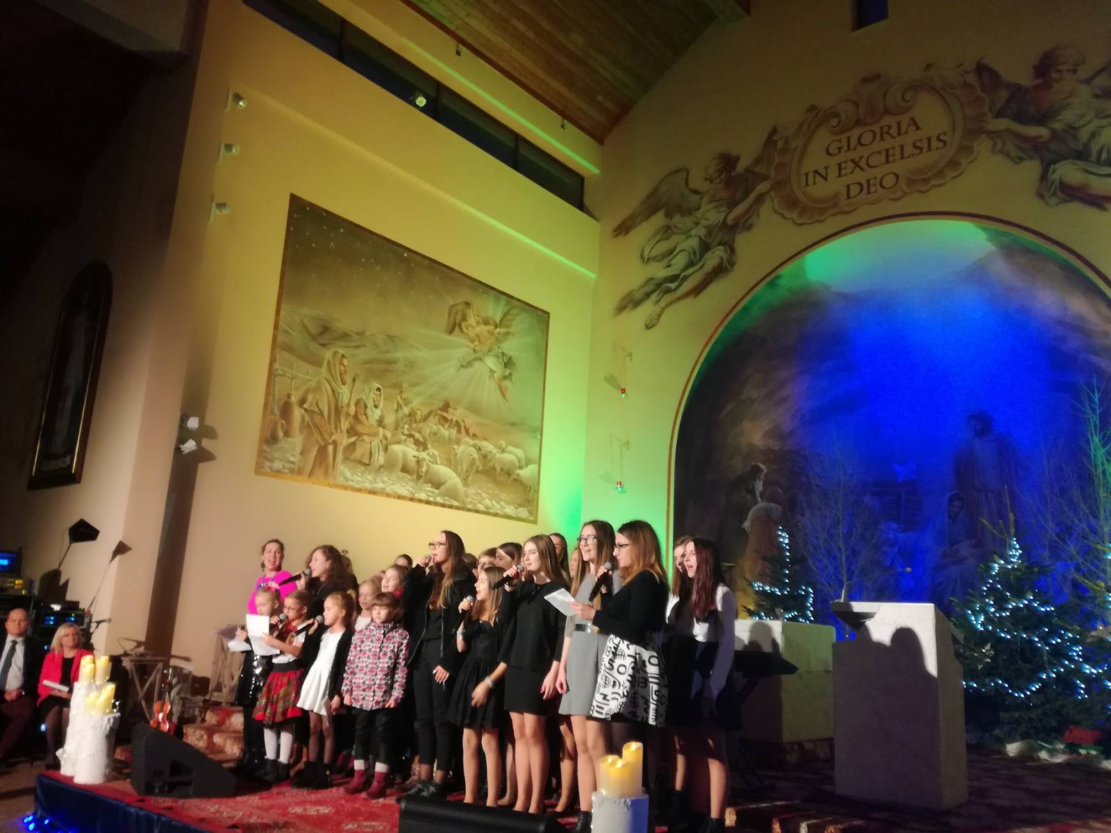 W sobotę wróciliśmy do domów po 22.00, natomiast w niedzielę, 21 stycznia, trzeba było wyruszyć z powrotem już o 7.30, żeby zdążyć na warsztaty. Trwały one ponad dwie godziny. Dodatkowo dzieci i opiekunowie ugoszczeni zostali królewskim śniadaniem (bigosik - mmmm.... palce lizać, naleśniki, wędlinki, serki, a ciasta.... poezja!). Po warsztatach i jedzonku wszyscy przenieśli się do kościoła pw. Narodzenia Pańskiego w Pajęcznie. Parafia ta była jednym z głównych organizatorów konkursu. Tam, po krótkiej próbie i ustawieniu sprzętu, rozpoczął,\ się o godzinie 15.00 Koncert Laureatów, który trwał ponad trzy godziny. Na zakończenie wszyscy Laureaci Konkursu odśpiewali wspólną pieśń, której nauczyli się w czasie warsztatów. To była trudna wyprawa, biorąc pod uwagę liczbę dzieci i koniecznego do przewiezienia sprzętu i instrumentów,  ale naprawdę było warto. Za rok jedziemy znów, zresztą nie mamy innego wyjścia - tata Wojtka obiecał przywieźć w przyszłym roku trochę węgla ze Śląska, bo podobno w Pajęcznie marzną, a słowa trzeba przecież dotrzymywać ;-)